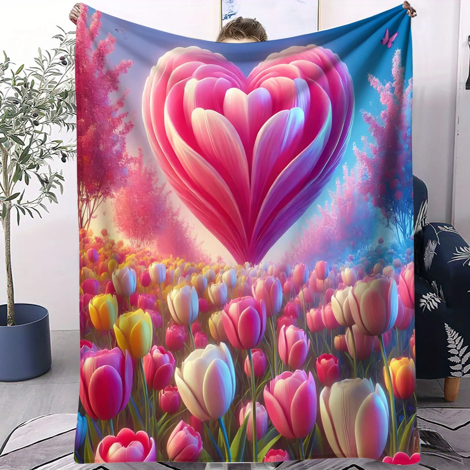 -50% "Tulip Heart Garden Blanket - Cozy Throw for Bedroom Sofa Picnic Camp Bed Romantic Decor Perfect Gift for Couples & Style Fans" de $19.47